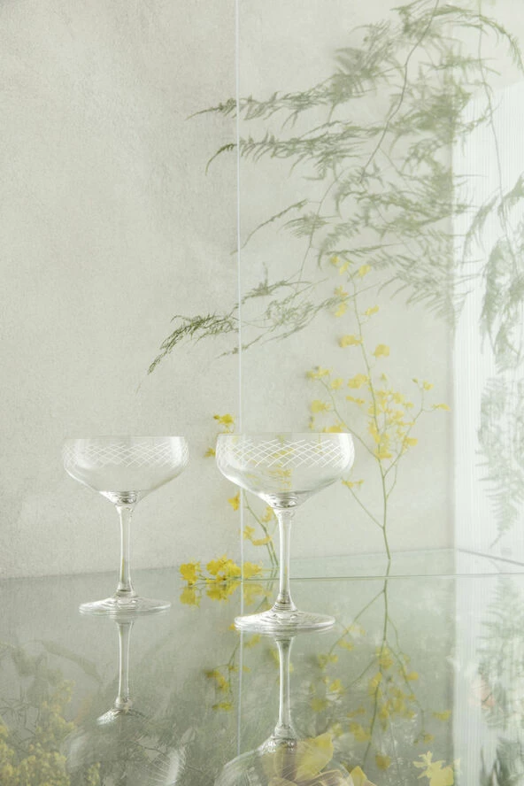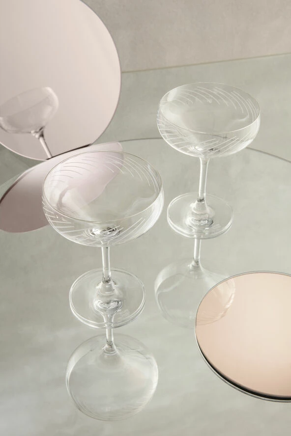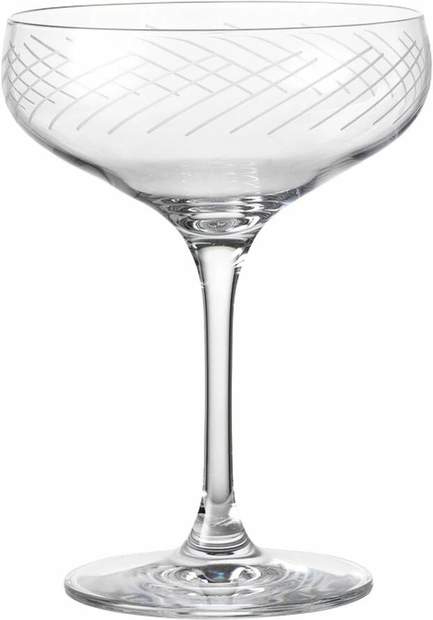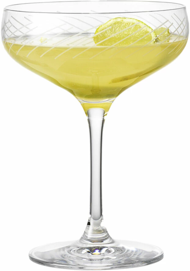 Som en del af Holmegaards serie Cabernet Lines lanceres nu et elegant cocktailglas, der matcher seriens vinglas, champagneglas og vandglas. Med svungne, graverede linjer, der komplementerer glassets klassiske coupe-form, bliver serveringen ekstra festlig og stilfuld. Cocktailglasset har en behagelig balance og er rart at drikke af og så pynter det også i hjemmebaren, når det ikke er i brug. Cabernet Lines er en videreudvikling af Cabernet designet af Peter Svarrer, der med sit elegante og lette udtryk er blevet en populær glasserie til hverdag og fest i mange hjem. Med de graverede linjer, der bevæger sig opad ogrundt om glasset, får det klassiske Cabernet-design en helt ny dimension med en legende lethed over sig. Cocktail-glasset tåler 55 grader i opvaskemaskinen og kan indeholde 29 cl.