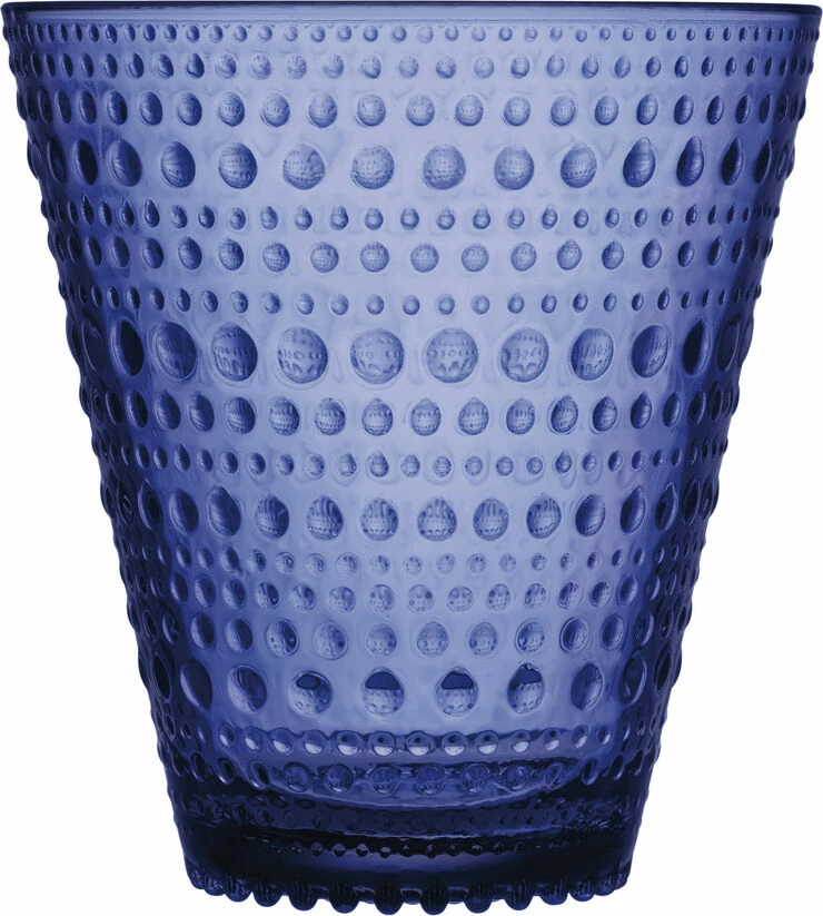 Kastehelmi betyder “”dugdråbe”” på finsk og morgenduggen er inspirationen til de hævede dråber på overfladen af Oiva Toikkas ikoniske kollektion. Alsidig, taktil og smuk, er det ikoniske Kastehelmi glas perfekt til juice, kolde drikke og mere. Fremstillet i Finland. Kommer i et sæt af to i en dyb, perle-lignende ultramarineblå.