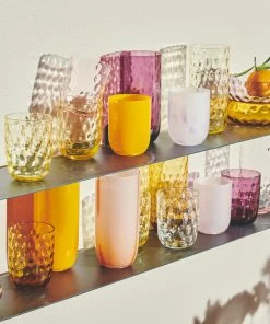 Danish Summer Tumbler med et mønster af små dråber kan både indeholde kolde og lune drikke, bruges til skriveredskaber eller til opbevaring af småting. Hver enkelt glas er mundblæst og afrundet i træform, så selvom alle produkter har sin egen unikke og varierende farve og mønster, er alle glas samme størrelse.