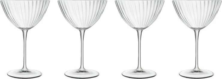 Optica er en serie af glas fra Luigi Bormioli med et smukt plisseret design, der giver et flot spil i glassene. 25 års garanti, der dækker skår på kant og fod samt misfarvning eller grå skygger som følge af maskinopvask. Ultraklart og holdbart krystalinglas.