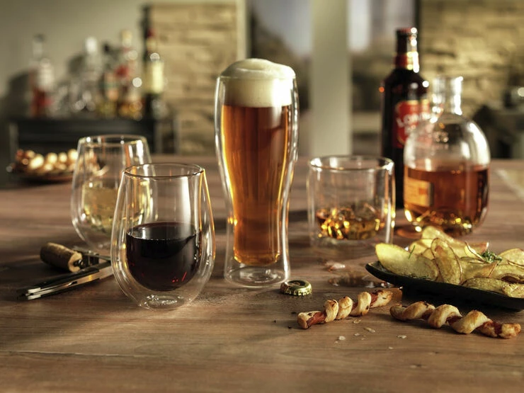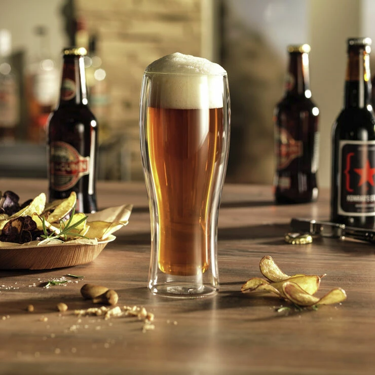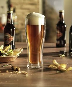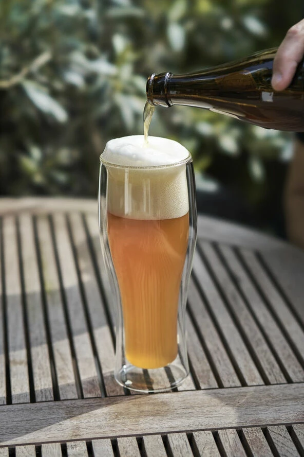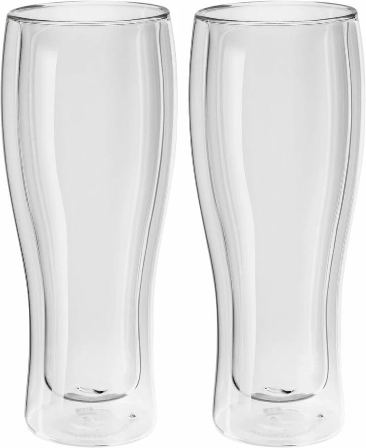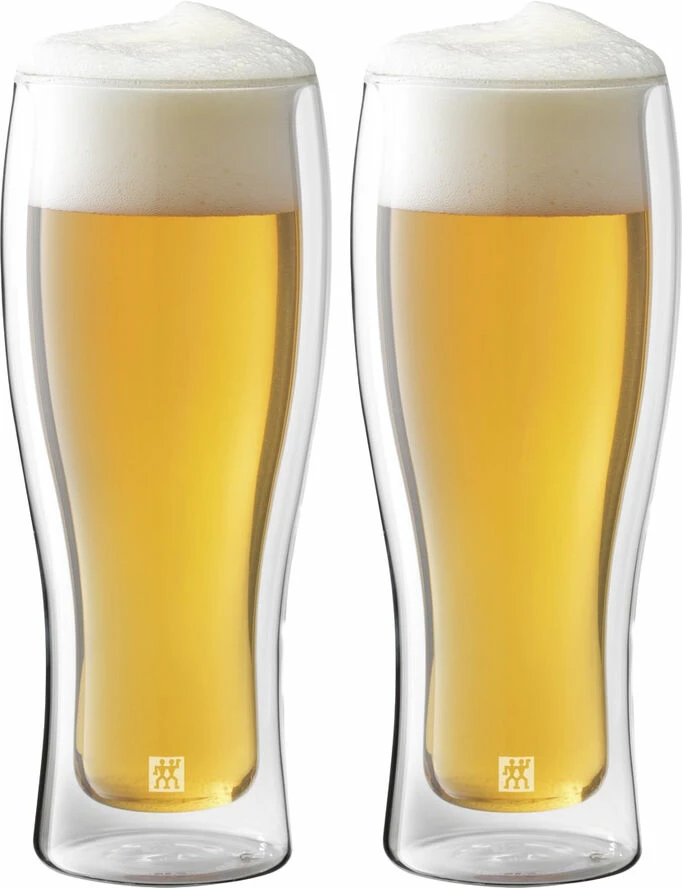 De elegante dobbeltvæggede ølglas i ZWILLING® Sorrento Bar serien er designet til at holde dine drikke kolde i længere tid sammenlignet med almindelige glas. Glassene er mundblæste i borosilikatglas, som ikke vejer ret meget, og tåler både opvaskemaskine og mikrobølgeovn, samt fryser. Glassene indeholder 410 ml og er designet af Matteo Thun og Antonio Rodriguez.